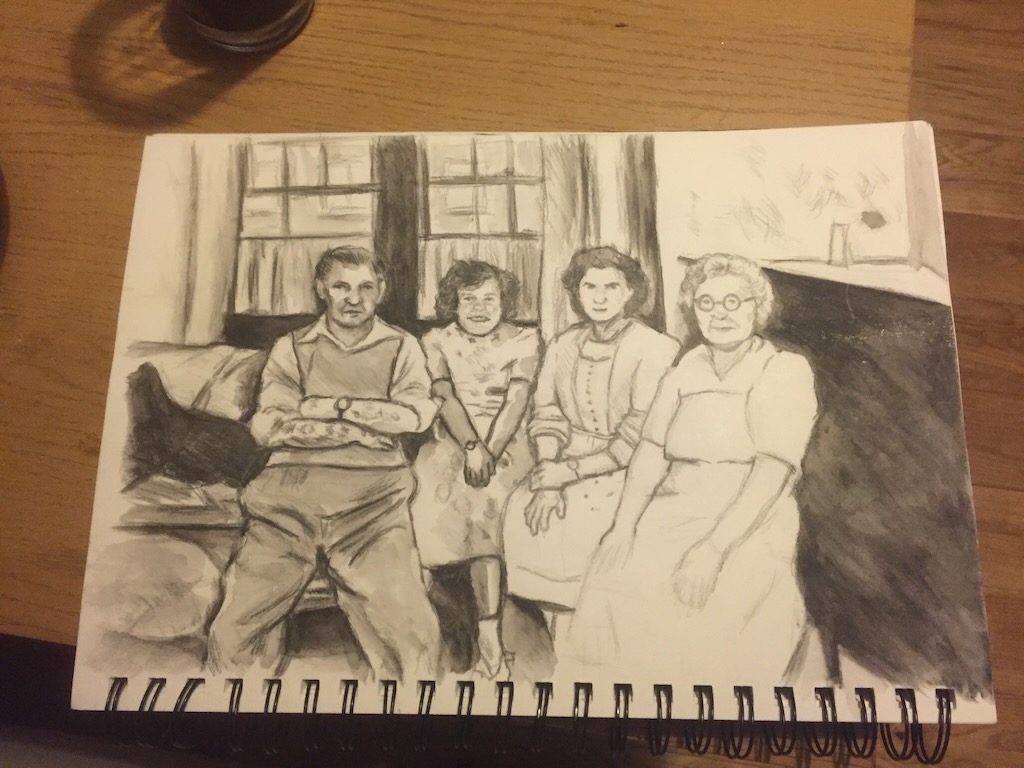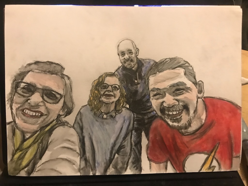 Misc People Friends and family Medium Watercolour pencils, pens and mixed media Dimensions A4 (210×297 mm) and oversized