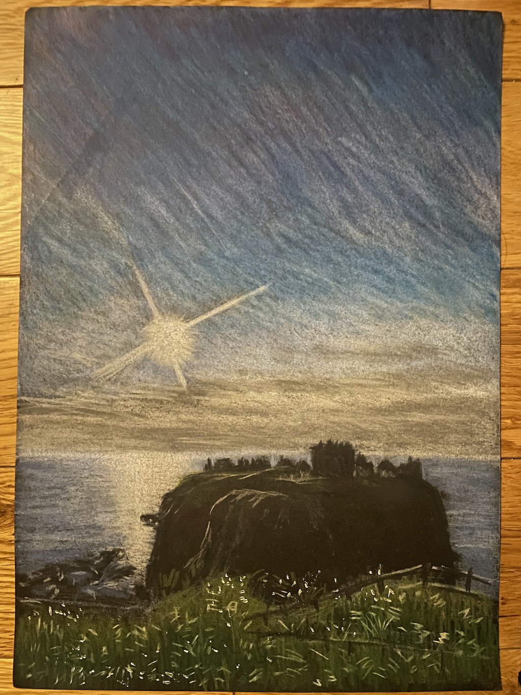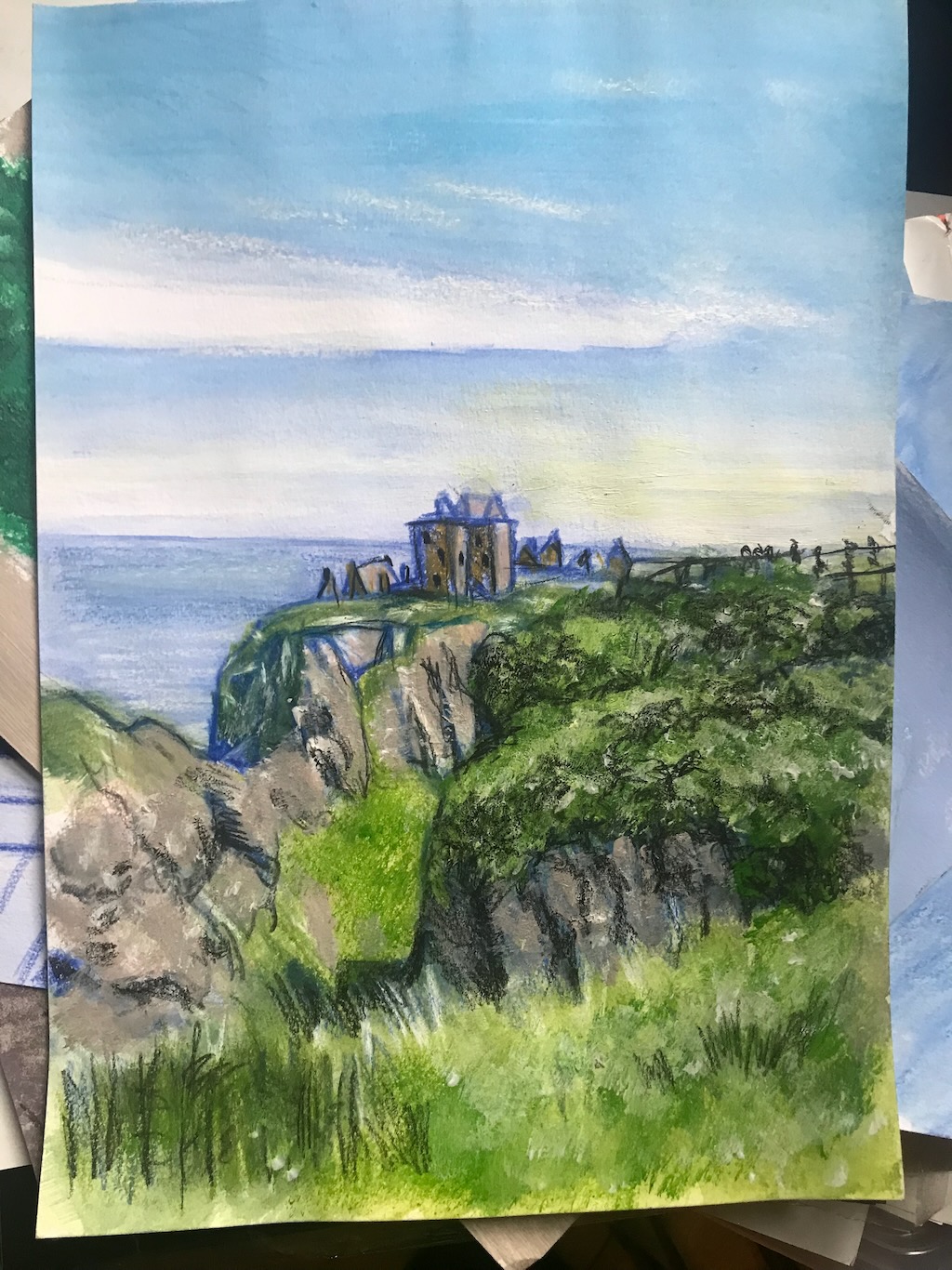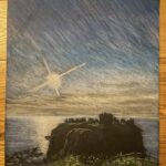 Stonehaven Donnatar Castle Medium Watercolour pencil on white and black paper, oils on canvas Dimensions A4 (210×297 mm) and oversize