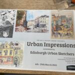 The Urban Impressions exhibition by Edinburgh Urban Sketchers was held at the Art and Design Library in the Edinburgh Central Library from 4 March to 29 March 2025.